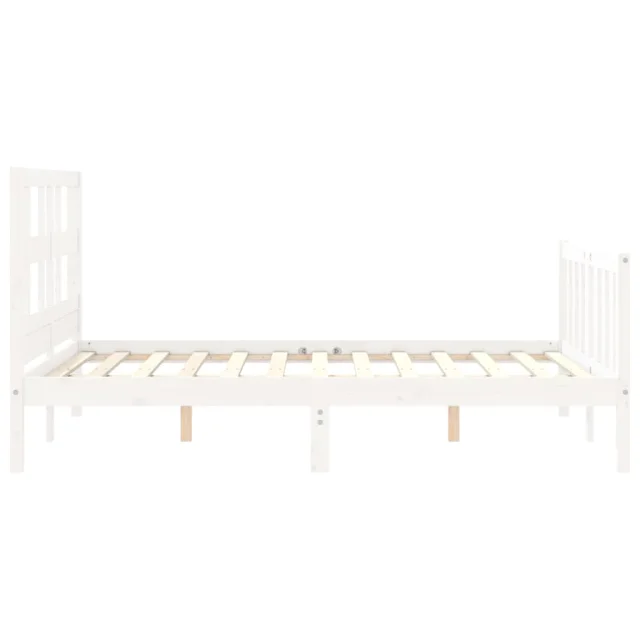 vidaXL Posteljni okvir z vzglavjem bel trden les