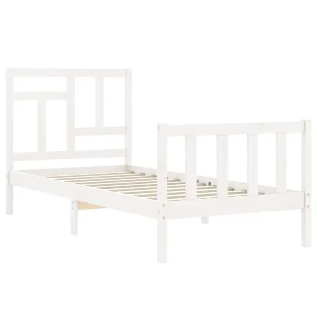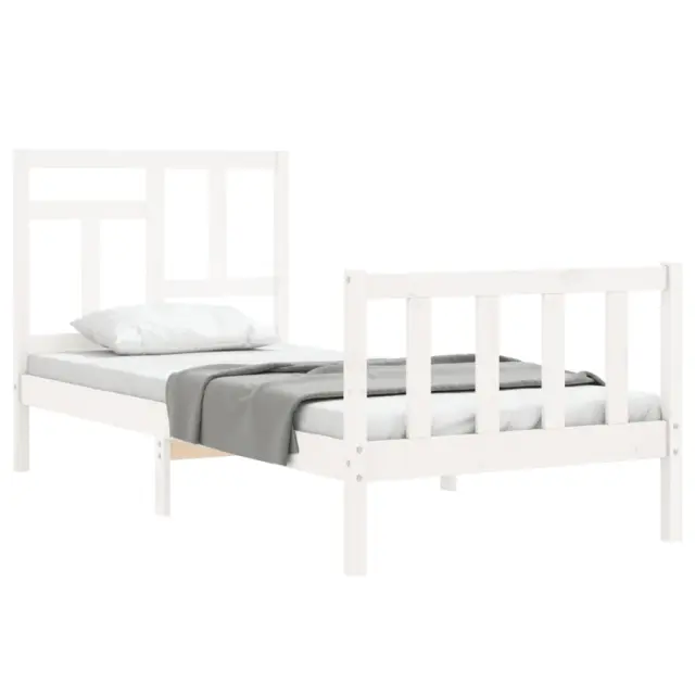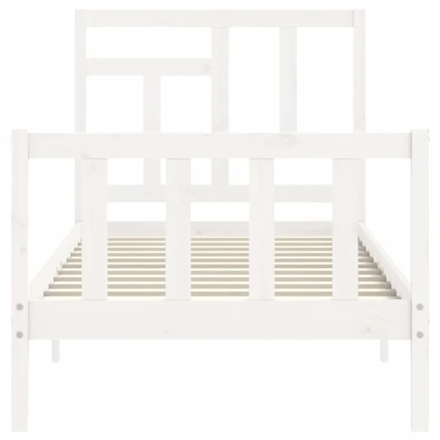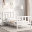 vidaXL Posteljni okvir z vzglavjem bel trden les