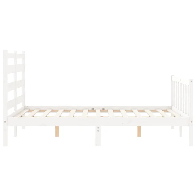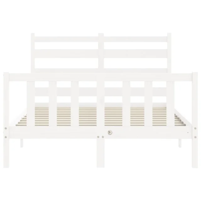 vidaXL Posteljni okvir z vzglavjem bel trden les