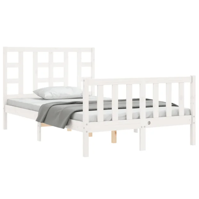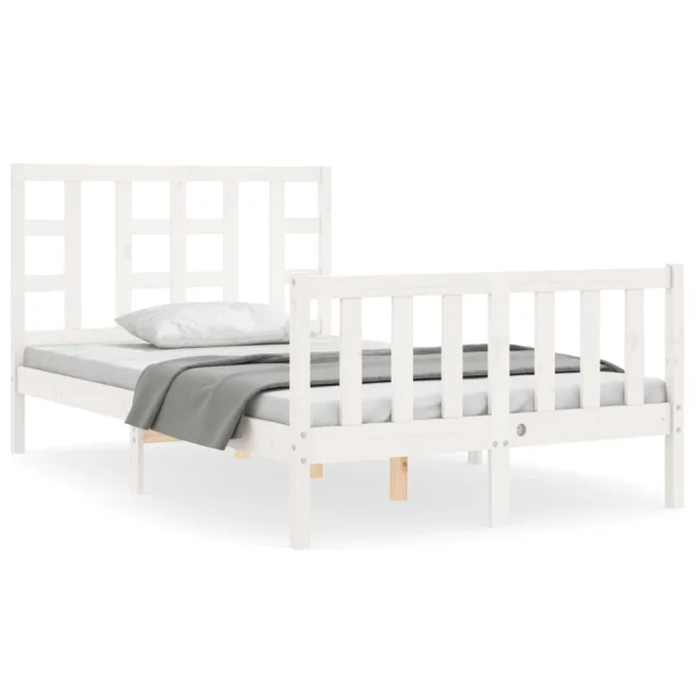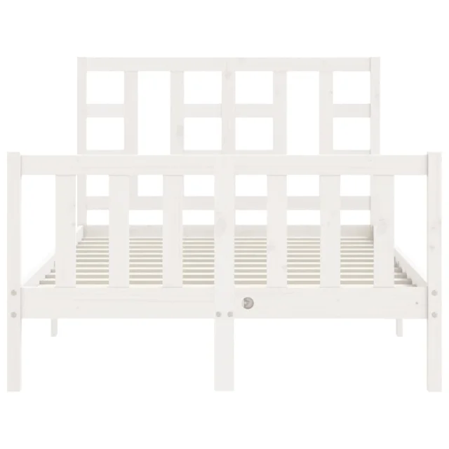 vidaXL Posteljni okvir z vzglavjem bel trden les