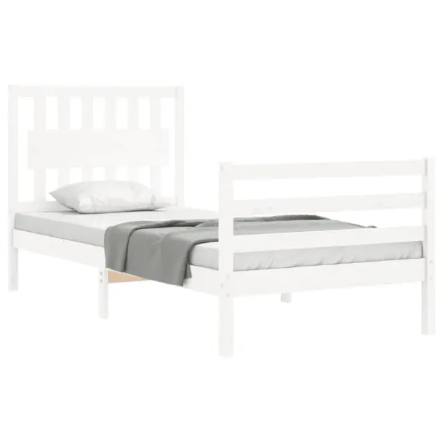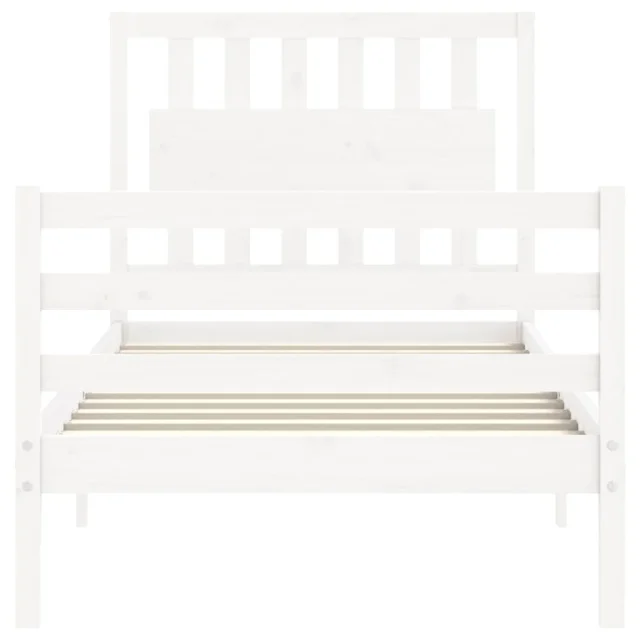 vidaXL Posteljni okvir z vzglavjem bel trden les
