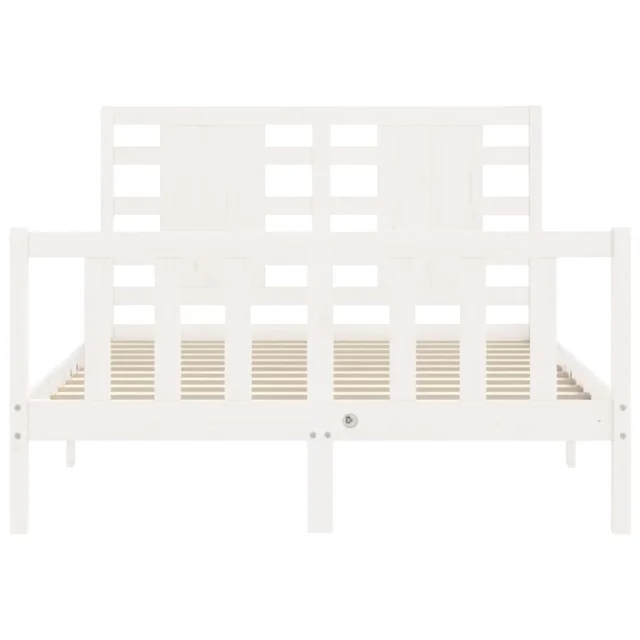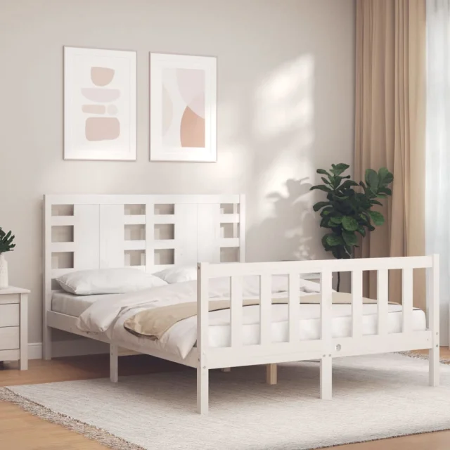 vidaXL Posteljni okvir z vzglavjem bel trden les