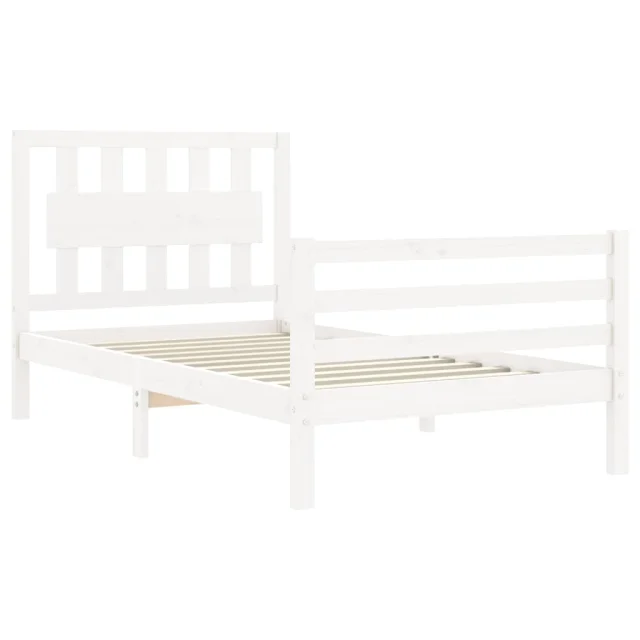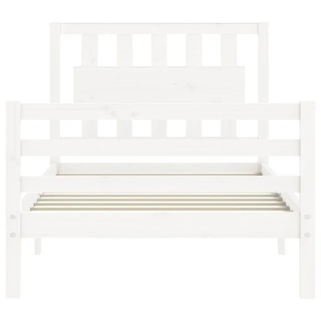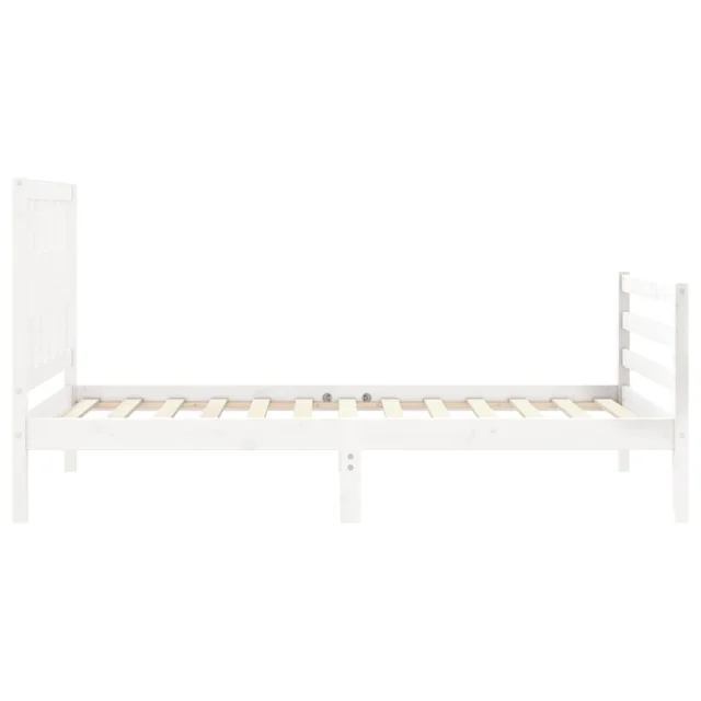 vidaXL Posteljni okvir z vzglavjem bel trden les