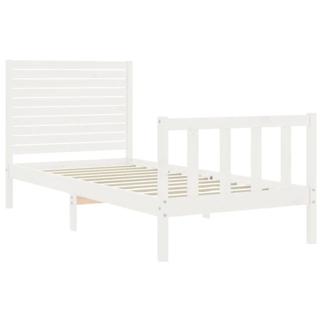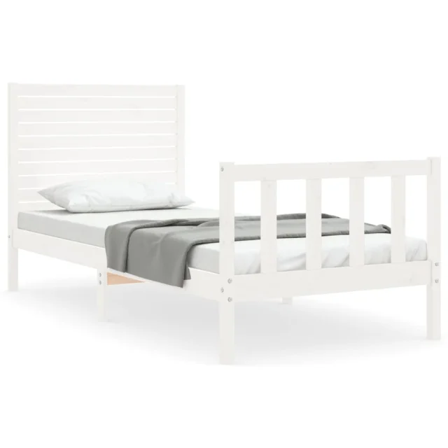 vidaXL Posteljni okvir z vzglavjem bel trden les