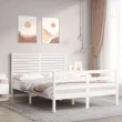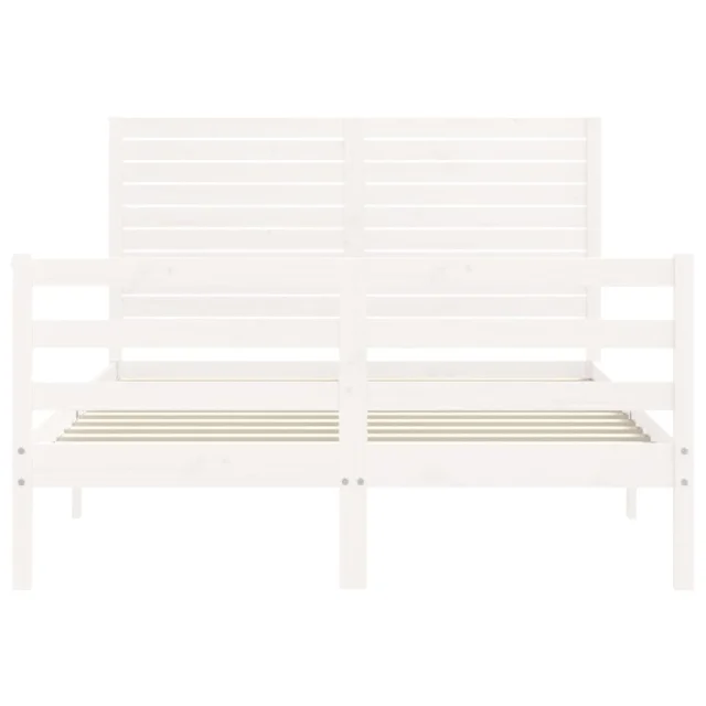 vidaXL Posteljni okvir z vzglavjem bel trden les