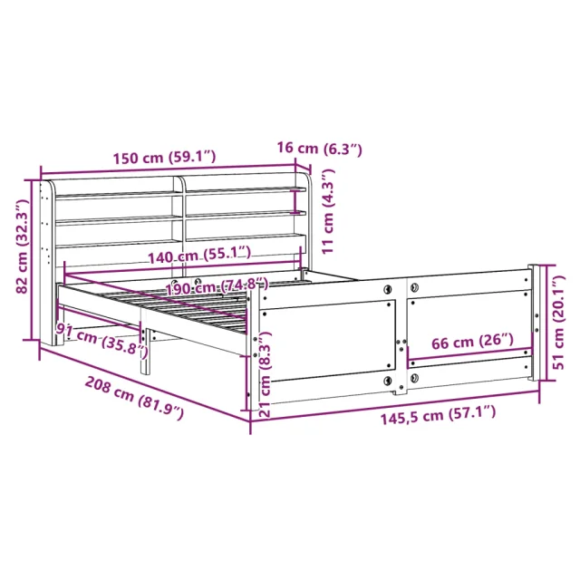 vidaXL Posteljni okvir z vzglavjem brez vzmetnice bel 140x190 cm