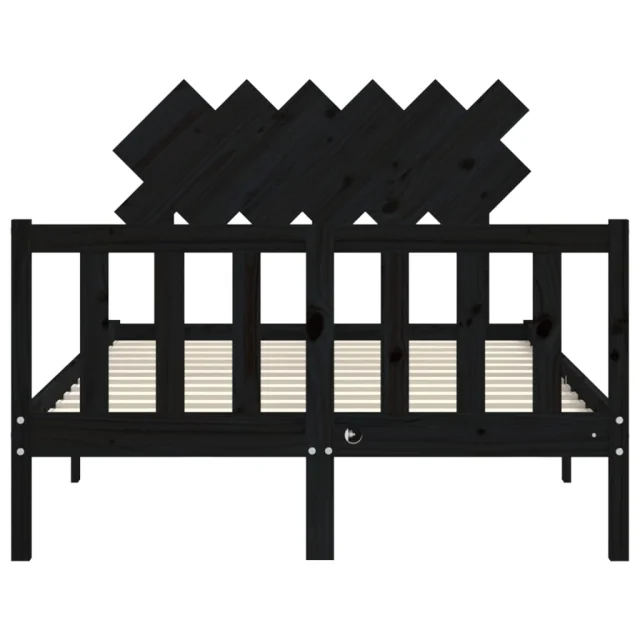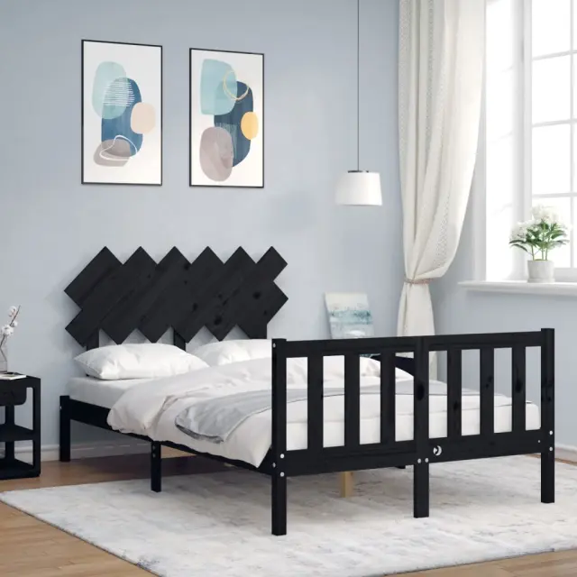 vidaXL Posteljni okvir z vzglavjem črn trden les