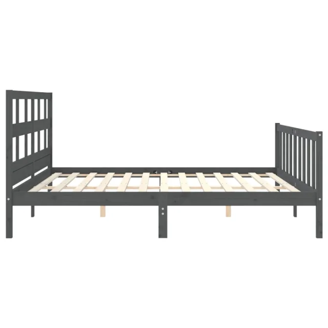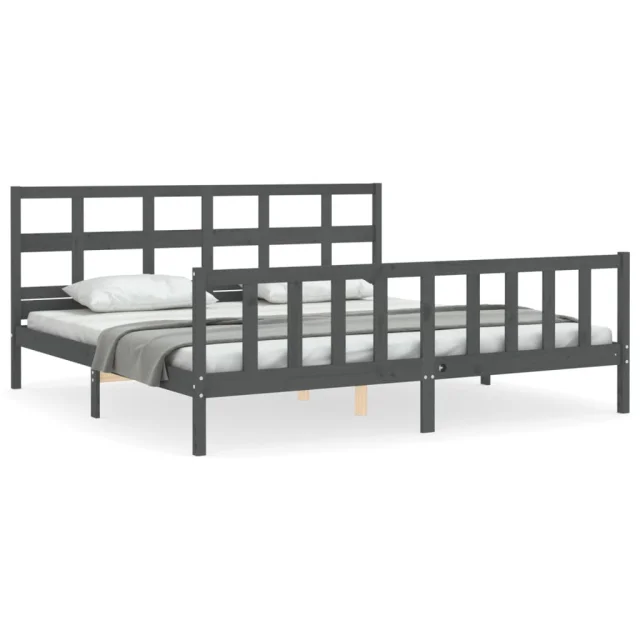 vidaXL Posteljni okvir z vzglavjem siv 200x200 cm trden les