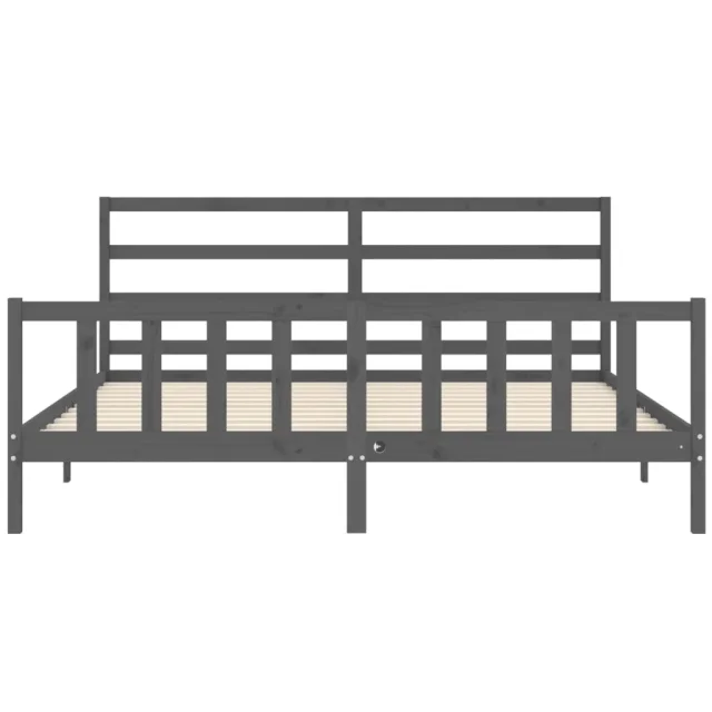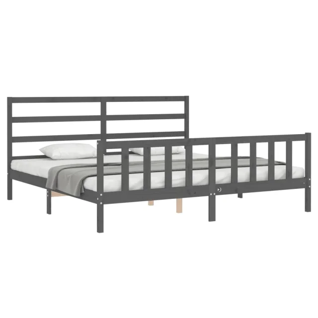vidaXL Posteljni okvir z vzglavjem siv 200x200 cm trden les