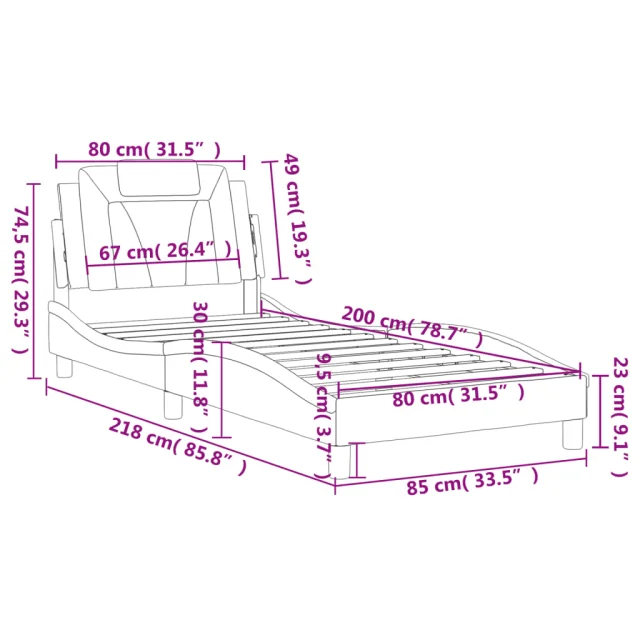 • Velikost primerne vzmetnice: 80 x 200 cm (Š x D) (vzmetnica ni priložena)