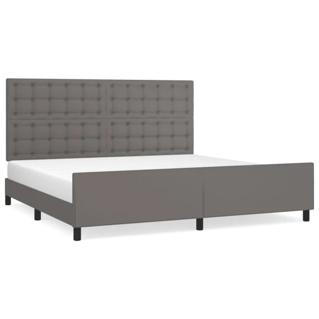 vidaXL Posteljni okvir z vzglavjem siva 200x200 cm umetno usnje