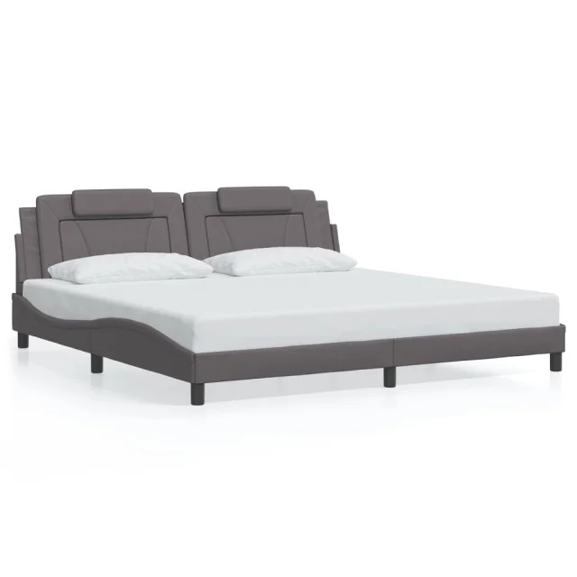 vidaXL Posteljni okvir z vzglavjem siva 200x200 cm umetno usnje