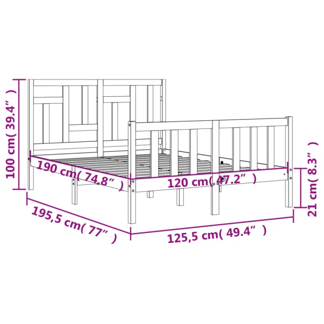 • Celotne dimenzije postelje: 195,5 x 125,5 x 100 cm (D x Š x V)