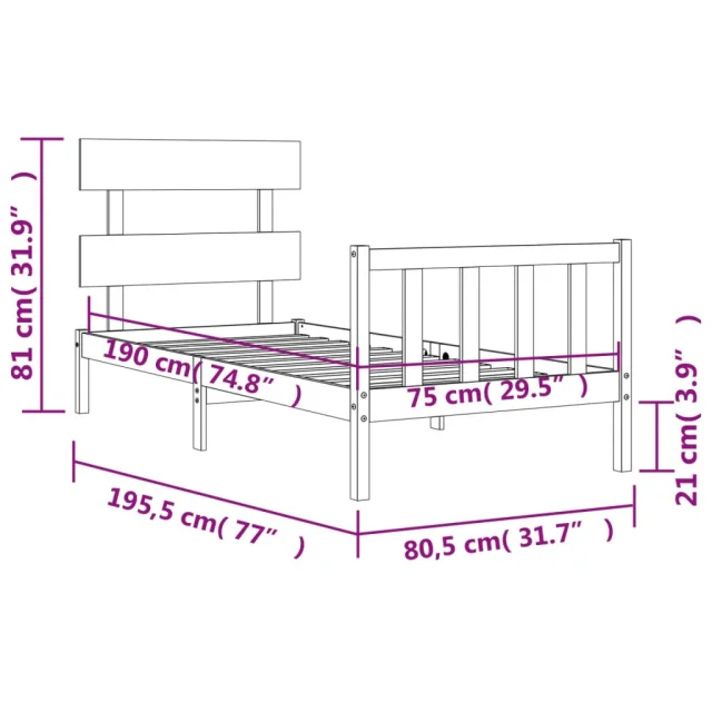 • Celotne dimenzije postelje: 195,5 x 80,5 x 81 cm (D x Š x V)