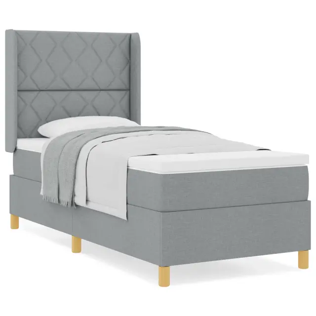 vidaXL Posteljni okvir z vzmetnico Svetlo siva 100x200 cm Tkanina