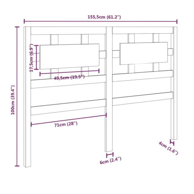 vidaXL Posteljno vzglavje 155,5x4x100 cm trdna borovina