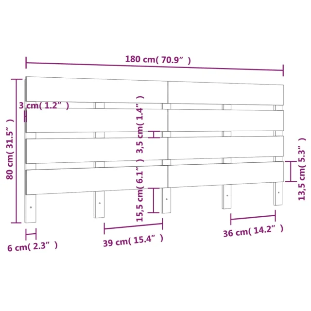vidaXL Posteljno vzglavje 180x3x80 cm trdna borovina