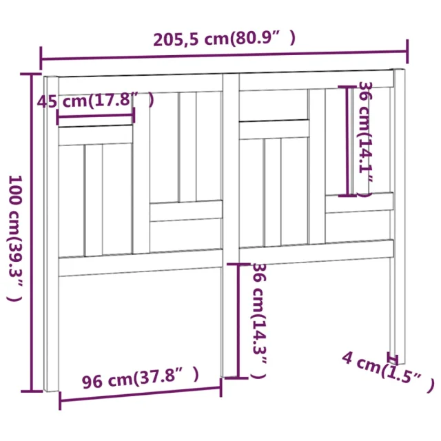 vidaXL Posteljno vzglavje 205,5x4x100 cm trdna borovina