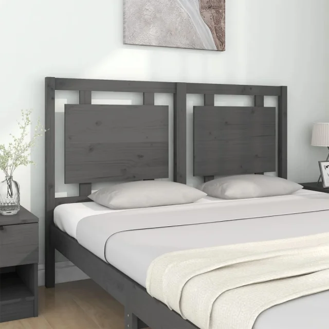 vidaXL Posteljno vzglavje sivo 145,5x4x100 cm trdna borovina