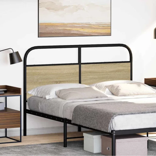 vidaXL Posteljno vzglavje sonoma hrast 120 cm jeklo in inženirski les