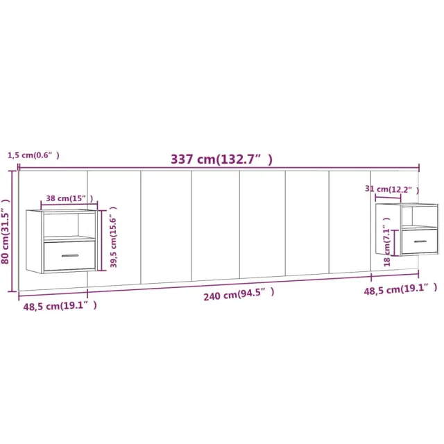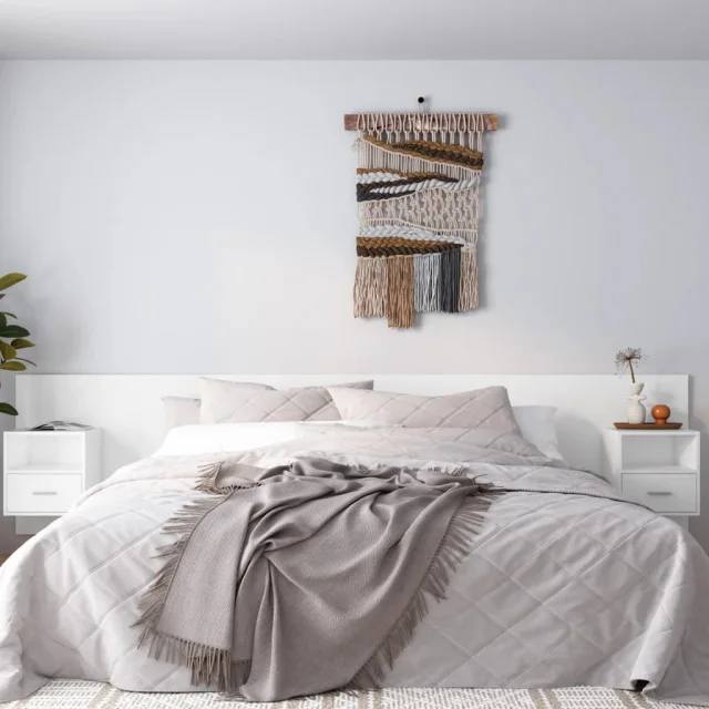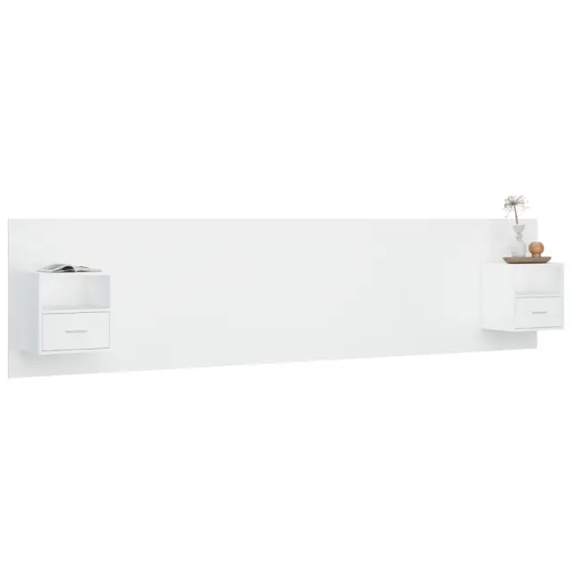 vidaXL Posteljno vzglavje z omaricami bel konstruiran les