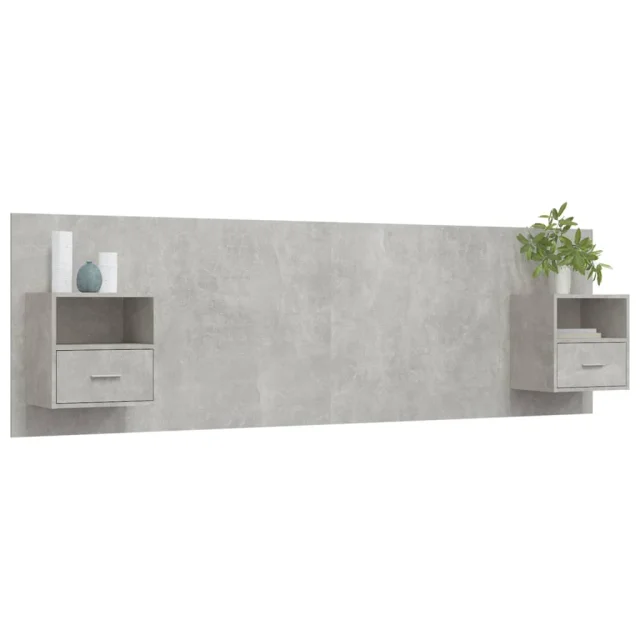 vidaXL Posteljno vzglavje z omaricami betonsko siv konstruiran les