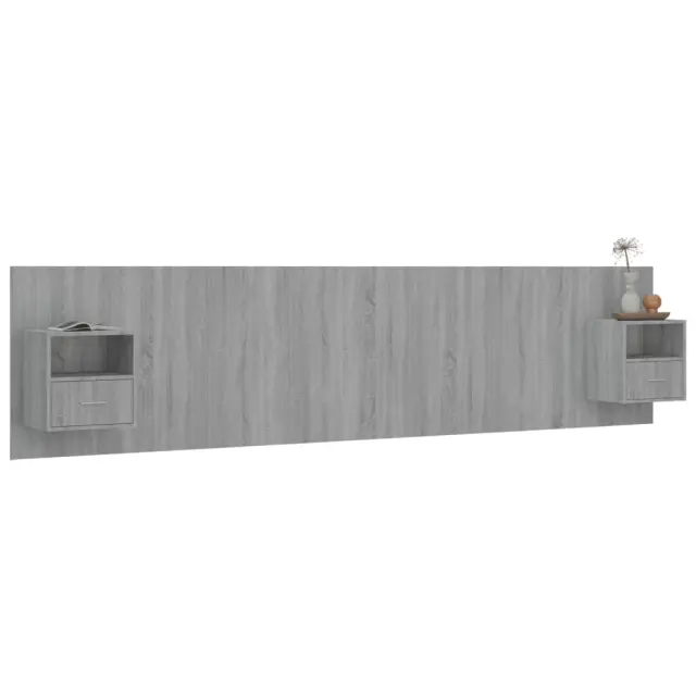 vidaXL Posteljno vzglavje z omaricami siva sonoma konstruiran les