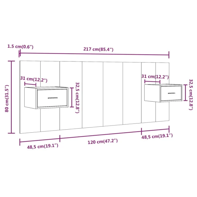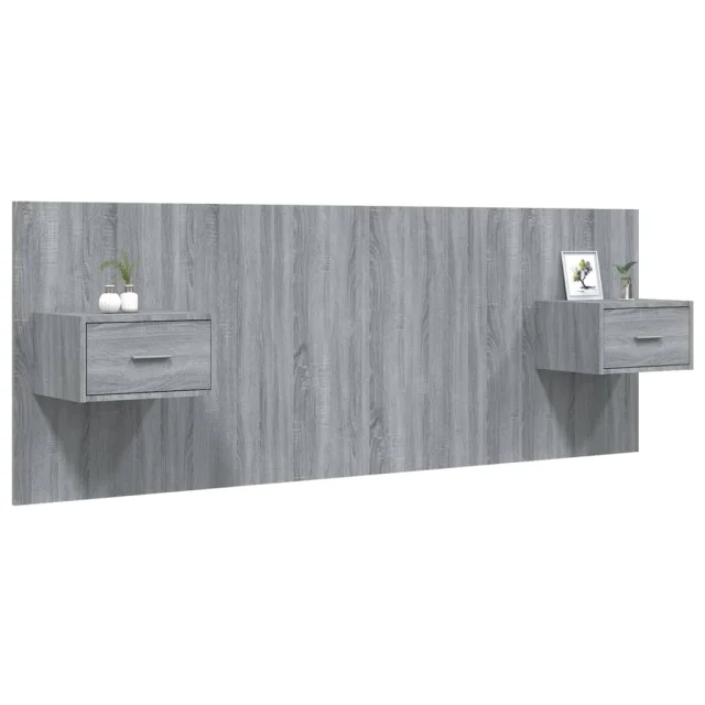 vidaXL Posteljno vzglavje z omaricami siva sonoma konstruiran les