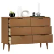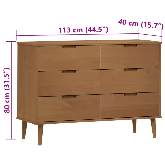 Ta klasičen lesen predalnik iz trdne borovine je popolna izbira, če želite dekorju v svojem domu dodati nekaj skandinavskega stila.