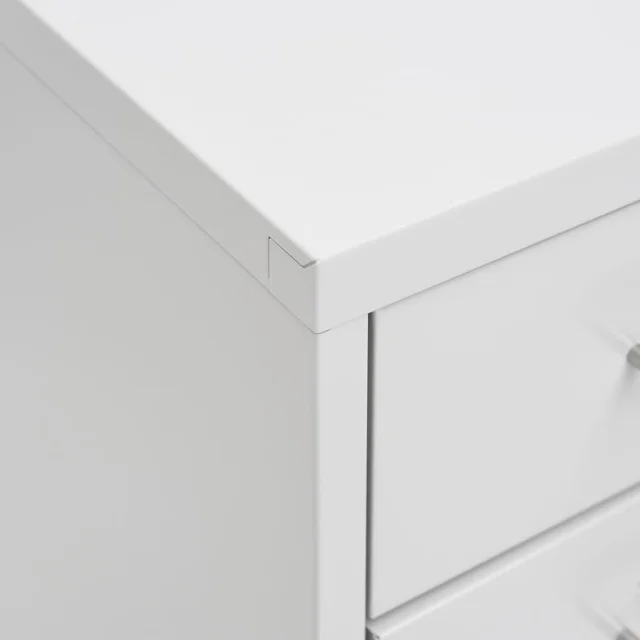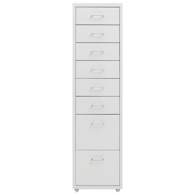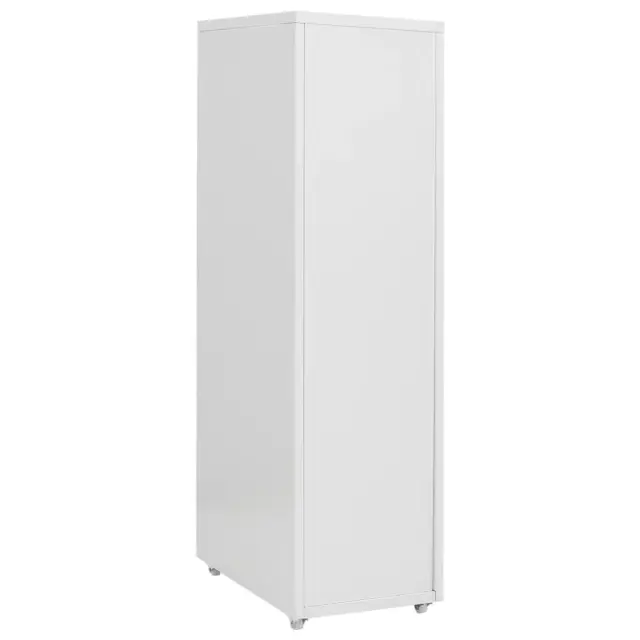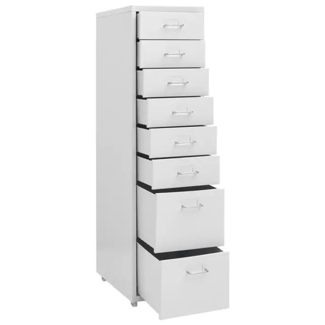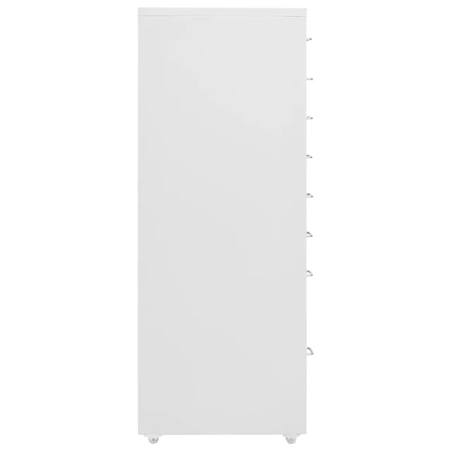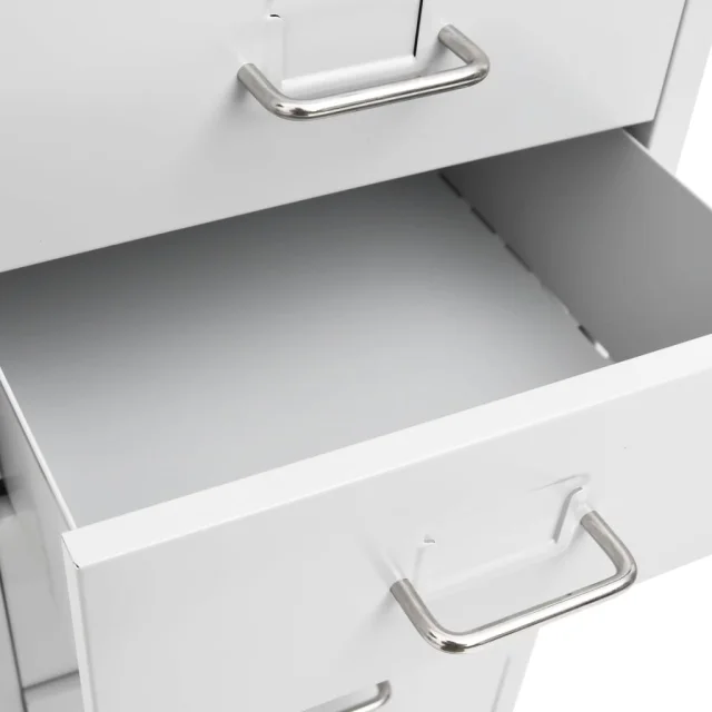 Ta pisarniška omara je izdelana iz kovine, ki zagotavlja vzdržljivost in preprosto čiščenje. Ta arhivska omara ima 8 predalov. Na kovinske ročaje lahko dodate oznake z imeni, kar omogoča urejeno sortiranje dokumentov v različne kategorije. Omara ima 4 kolesa, zato je preprosta za premikanje. Ker ima ikonično obliko, se lepo poda k dekorju v vsaki pisarni. Omara je preprosta za čiščenje z vlažno krpo.