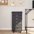Ta premična omarica s predali vam omogoča boljše delo, saj so stvari urejene in lahko dosegljive. Prilagodljiva kolesa: Zaradi koles je mogoče voziček s predali hitro in enostavno premakniti na poljubno delovno mesto.Veliko prostora za shranjevanje: V omari za dokumente je dovolj prostora za shranjevanje ali razvrščanje dokumentov, knjig ali datotek. Primerna je za postavitev pod delovno postajo, da čim bolj izkoristite prostor na tleh. Z vbočenim ročajem lahko izvlečete vsak predal, da dobite, kar želite.Trdna borovina: Trdna borovina je čudovit naravni material. Borovina ima ravne vzorce, grče pa dajejo materialu njegov značilen, rustikalen videz.Široka uporaba: S svojo preprosto zasnovo se predalnik dobro prilega vsakemu prostoru. Kot praktičen zabojnik za shranjevanje ga lahko uporabljate v dnevni sobi, spalnici, kuhinji, garaži, pisarni ali obrtni sobi!Enostavno čiščenje: Pisarniška omarica ima gladko premazano površino, ki jo zlahka očistite z vlažno krpo.Barva: SivaMaterial: Trdna borovina, inženirski les, plastikaDimenzije: 34 x 39 x 65,5 cm (Š x G x V)Notranje dimenzije predala: 27,5 x 34 x 9 cm (Š x G x V)Notranje dimenzije predala: 26 x 33,5 x 7 cm (Š x G x V)S 6 predaliLinija: MOSSPotrebno sestavljanje: Da 355890