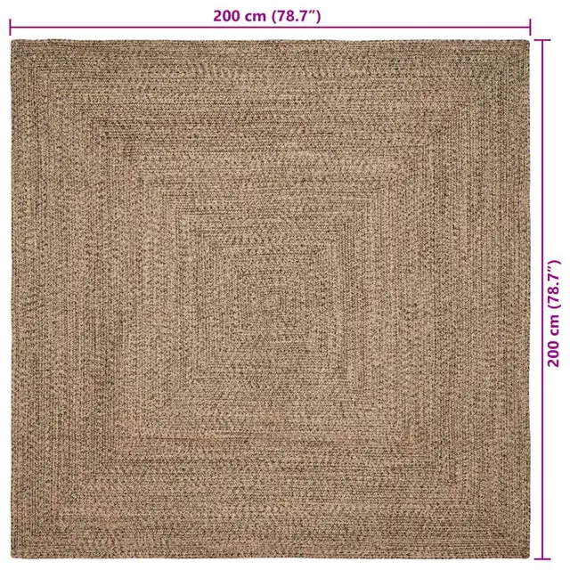 vidaXL Preproga Naravna in črna 200 x 200 cm Juta