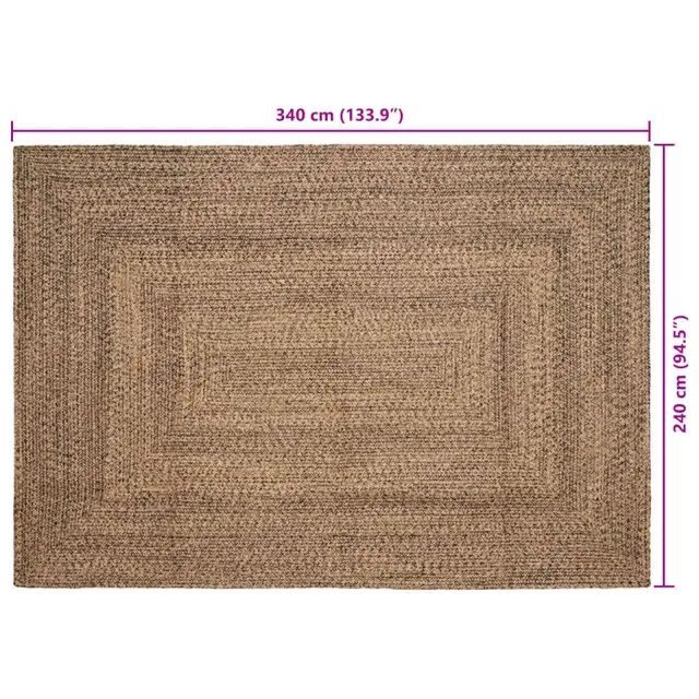 vidaXL Preproga Naravna in črna 240 x 340 cm Juta
