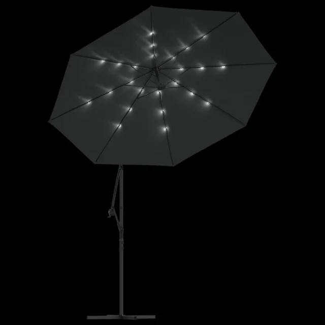 vidaXL Previsni senčnik LED luči in kovinski drog 300 cm antracit