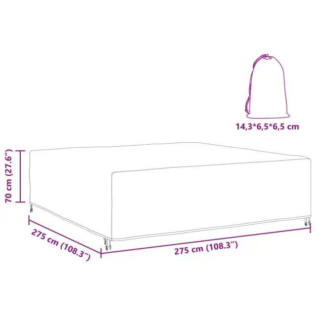 • Vodoodporna tkanina Tkanina tega prekrivalo je vodoodporna, kar jo naredi idealno za zunanjo sedežno garnituro ali v sadežnih prostorih. Tako bo vaše pohištvo suho in zaščiteno pred različnimi vremenskimi vplivi, kar podaljšuje njeno trajnost in estetski izgled v patio in notranjih prostorih.