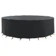 Ta pokrov za zunanje pohištvo dodaja nujno plast zaščite za tvoje lepe zunanje kose, združuje močno funkcijo z elegantnim sodobnim dizajnom. Njegova okrogla oblika je narejena tako, da paše k različnim postavitvam pohištva in ščiti vse pred vremenskimi vplivi. Pokrov izboljša videz tvojega vrta s čistimi linijami in minimalističnim šarmom, hkrati pa ponuja trdno zaščito pred vodo in UV žarki.