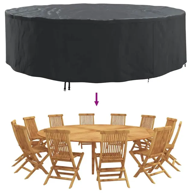 Ta pokrov za zunanje pohištvo dodaja nujno plast zaščite za tvoje lepe zunanje kose, združuje močno funkcijo z elegantnim sodobnim dizajnom. Njegova okrogla oblika je narejena tako, da paše k različnim postavitvam pohištva in ščiti vse pred vremenskimi vplivi. Pokrov izboljša videz tvojega vrta s čistimi linijami in minimalističnim šarmom, hkrati pa ponuja trdno zaščito pred vodo in UV žarki.