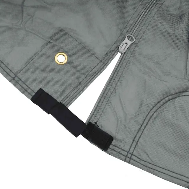 • Zasnova, odporna na veter: Elastični robovi prevleke zagotavljajo udobno prileganje vašemu vozilu, medtem ko jo nastavljivi trakovi z zaponkami na dnu, spredaj in zadaj varno držijo tudi v dneh z močnim vetrom. Prevleka ima tudi kljukice in zanke okoli zadrg za varno pritrditev.