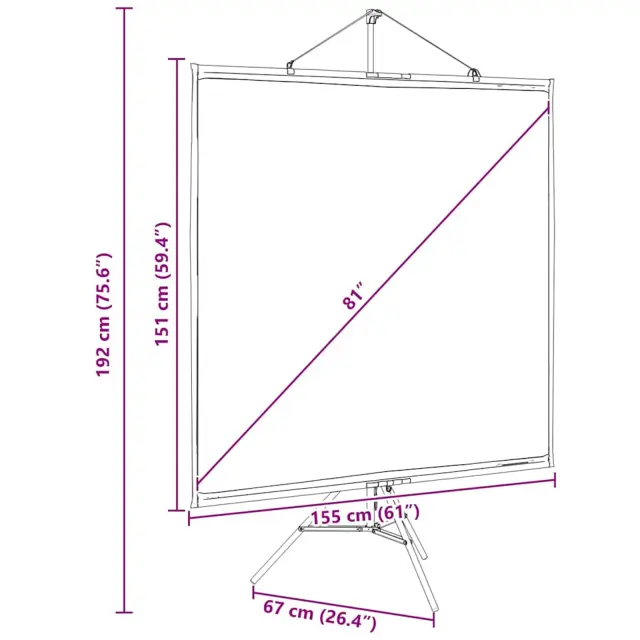 vidaXL Projekcijsko platno s stativom 81 palcev 1: 1