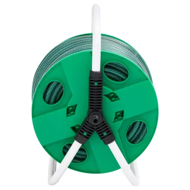 Ta prostostoječi kolut za cev je praktičen predal, ki bo zagotovo idealen za shranjevanje vrtne cevi in dodatkov, da bodo lepo shranjeni in skriti. Trpežen material: Cev je izdelana iz PVC. Polivinilklorid (PVC) s svojo odpornostjo na vremenske vplive in UV-žarke omogoča, da cev deluje tudi v ekstremnih vremenskih razmerah. Prav tako je odporna na olje in obrabo, kar zagotavlja dolgotrajno delovanje.Stabilna in vzdržljiva konstrukcija: Konstrukcija iz pocinkanega jekla zagotavlja vzdržljivost, stabilnost in odpornost proti koroziji in zahtevnim vremenskim razmeram ter tako zagotavlja dolgotrajno delovanje.Brez nereda: Poševni priključek cevi preprečuje zvijanje in prepletanje cevi, kar omogoča udobno uporabo.Učinkovito namakanje: Cev za vodo je dovolj dolga, da z njo lahko enakomerno zalivate večje število rastlin ali pridelkov.Priročni dodatki: Cev iz PVC je opremljena s 4-delnim kompletom priključkov. 1 hitra spojka za zaustavitev pretoka vode, ko je razpršilna šoba odklopljena, 1 hitra spojka za standardni konec cevi, 1 razpršilna šoba za individualno nastavitev vodnega curka in 1 priključek za pipo. Zasnovana je kot celovita rešitev za namakanje.Enostavno shranjevanje: Vrtna cev je prožna in se med uporabo ne more zasukati ali prepogniti. Zaradi lahke zasnove jo je enostavno shranjevati in prevažati.Kolut za cev:Barva: ZelenaMaterial: Pocinkano jeklo in plastikaDimenzije: 40 x 30 x 41 cm (D x Š x V)Premer bobna: 30 cmŠirina bobna: 19,5 cmZa shranjevanje do 45 m vrtne cevi 1/2"Potrebno sestavljanje: DaKomplet nastavkov za cev:Barva: ZelenaMaterial: Polivinilklorid (PVC)Dolžina: 50 mDebelina: 1,8 mmNotranji premer: 0,5" (12 mm)Zunanji premer: 0,6" (15,6 mm)Notranji premer priključka za pipo: 1,9 cmZunanji premer priključka za pipo: 3 cm3-slojna ojačana tkaninaRazpon delovnega tlaka: 6~18 bar (87~261 PSI)Območje delovne temperature: -10~60 stopinjPaket vsebuje:1 x Kolut za cev1 x Pršilna šoba1 x Priključek za pipo1 x Hitra spojka (zaustavitev)1 x Hitra spojka (standardna) 3281512