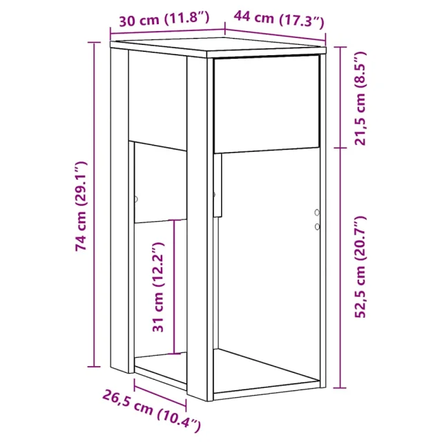 vidaXL Računalniški stolp s predalom betonsko sivo 30x44x74 cm