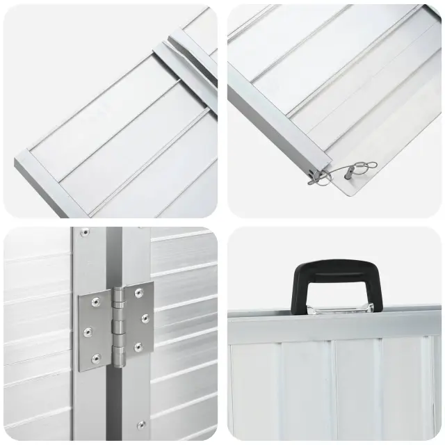 Ta Moderni Ramp za Invalidske Vozičke je odlična izbira za prečkanje pragov in višin. Idealna je za uporabnike invalidskih vozičkov ali tiste s mobilnimi pripomočki. Z industrijskim stilom, jota navdihujejo grobi materiali in minimalistično oblikovanje moderne arhitekture, se brez težav zlije z okoljem garaže ali dovozne poti, hkrati pa nudi rešitev za dostopnost. Aluminij zagotavlja slog in obstojnost, njegovo srebrno površino pa je težko prezreti.