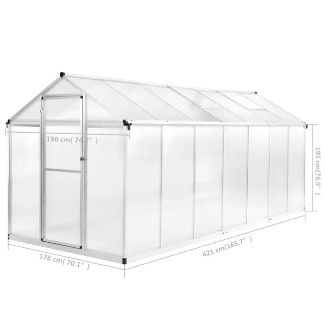 vidaXL Rastlinjak iz aluminija 421x190x195 cm 15,6 m³