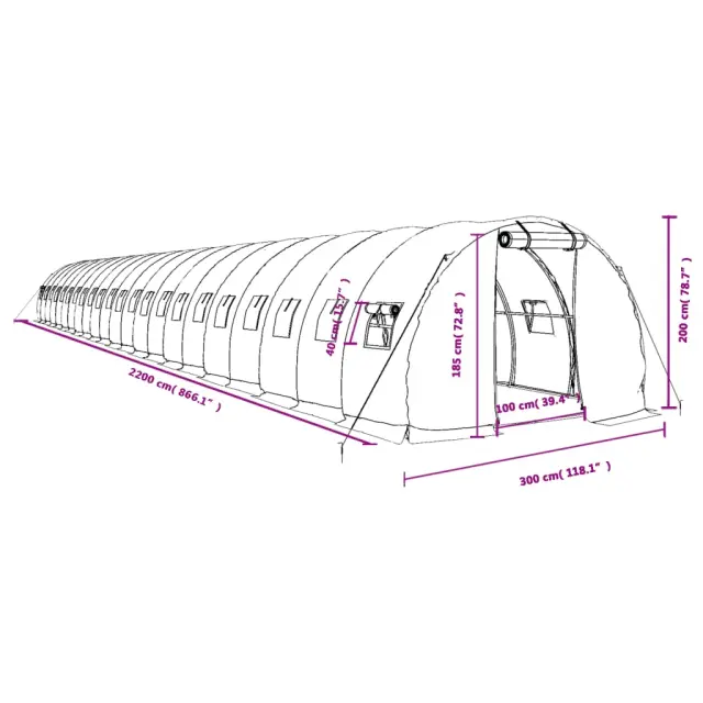Ta prostoren rastlinjak lahko namesti precejšnje število sadja, zelenjave in rastlin. Idealen je za zaščito rastlin pred neugodnimi vremenskimi razmerami. Trpežna PE prevleka: Polietilen (PE) je najpogosteje uporabljen plastični material. Odporen je na UV žarke, vremenske vplive, preprečuje trganje, je lahek in enostaven za vzdrževanje. Poleg tega ščiti rastline pred škodo, ki jih povzročajo ptice, in ohranja toploto.Trpežen okvir: Jeklo je izjemno trd in močan material. Ponuja trdnost in stabilnost. Pocinkanje zagotavlja boljšo zaščito pred korozijo in je uporabno za izdelke, ki se bodo uporabljali na prostem kot tudi v zahtevnih okoljih.Praktična zasnova: Hiša za rastline je zasnovana tako, da omogoča enostaven dostop in optimalno kroženje zraka, saj ima dvižna vrata z zadrgo in 4 stranska dvižna mrežna okna. Dobro je vedeti:Za večjo trdnost priporočamo namestitev temeljev. Streha rastlinjaka ne prenese večje količine snega.Barva: ZelenaMaterial: PE (polietilen), pocinkano jekloDimenzije: 22 x 3 x 2 m (D x Š x V)Velikost okna (vsako): 40 x 40 cm (D x Š)Velikost vrat: 100 x 185 cm (Š x V)Gostota PE: 140 g/m²Z 2 zadrgamaPotrebno sestavljanje: Da 3188048