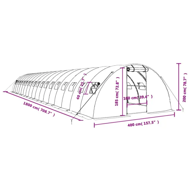 vidaXL Rastlinjak z jeklenim ogrodjem zelen 72 m² 18x4x2 m