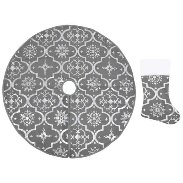 vidaXL Razkošna podloga za novoletno jelko z nogavico siva 150 cm