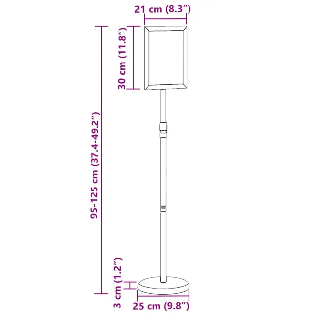 • Splošne dimenzije: 25 x 25 x 125 cm (D x Š x V)