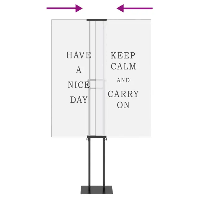 • Lastnosti / Funkcija / Oblika: Zasnovano je za obojestranske predstavitve, kar pomeni večjo vidnost in oglasni prostor, ne da bi potrebovalo dodaten tlakovec. Ima nedrsečo podlago, ki daje stabilnost posterjem in preprečuje njihovo premikanje med uporabo.