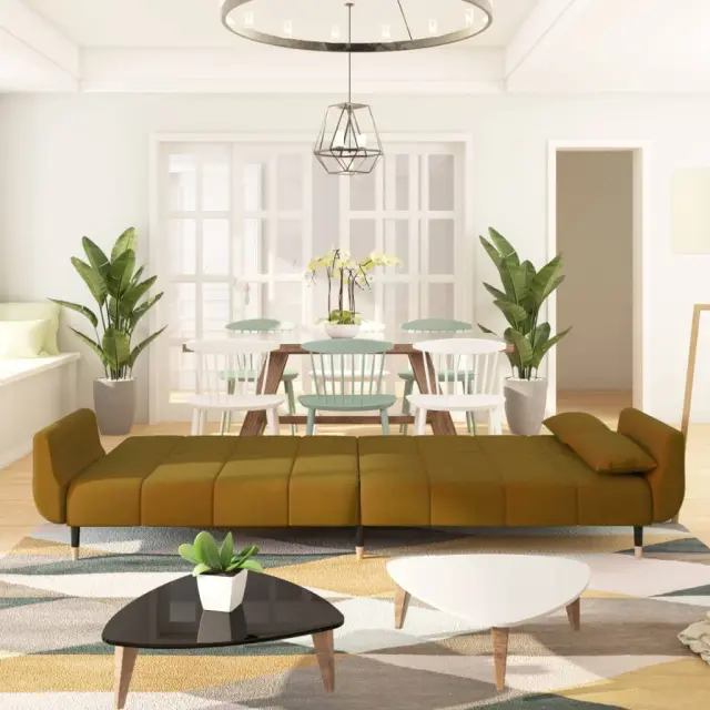 Ta raztegljiv kavč je zasnovan tako, da se raztegne. Tako lahko izbirate med sedenjem, ležanjem ali spanjem glede na svoje želje in udobje. To je idealen kos pohištva, če potrebujete dodaten prostor za spanje za svoje prijatelje in goste.