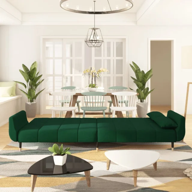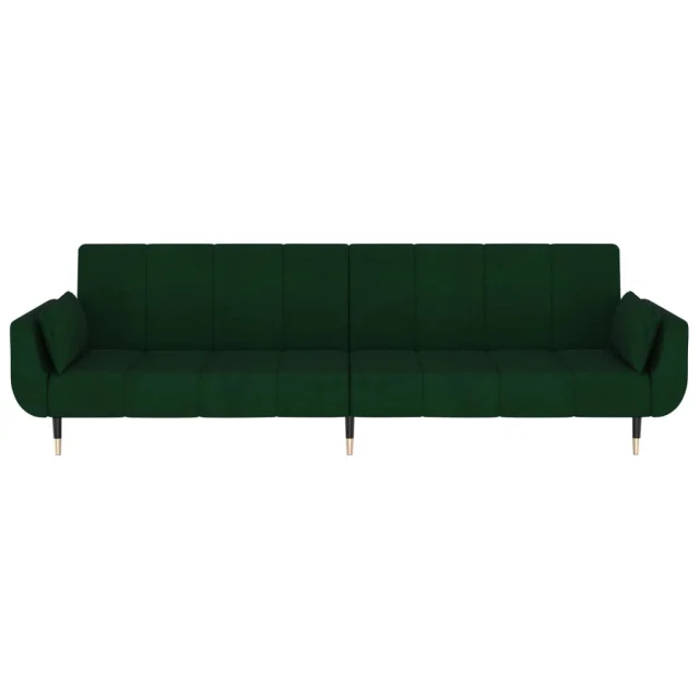 vidaXL Raztegljiv kavč dvosed z blazinama temno zelen žamet